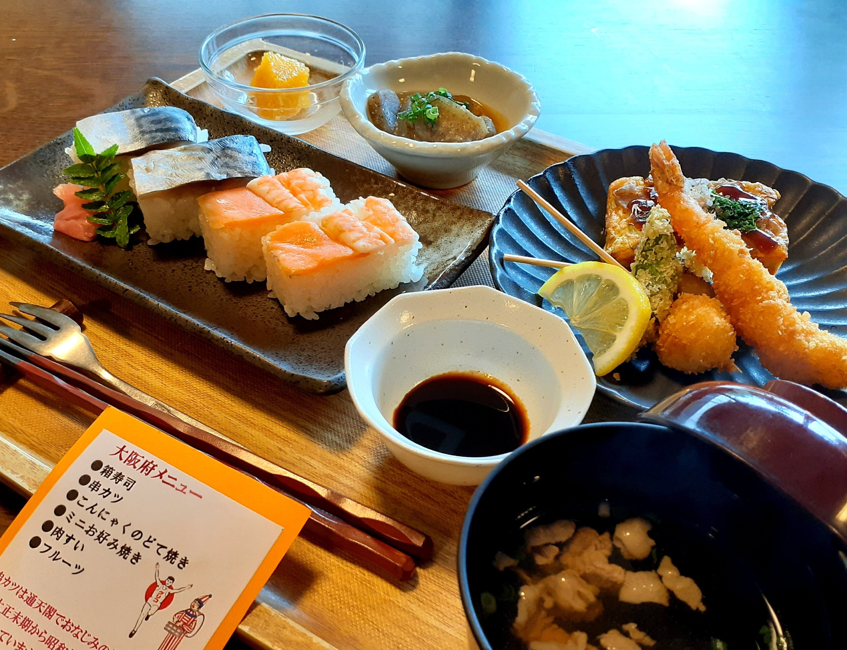 今月のご提供は大阪府。さすがの天下の台所、サクサクの串カツやネタの分厚い箱寿司等々、皆さま美味しいと舌鼓。