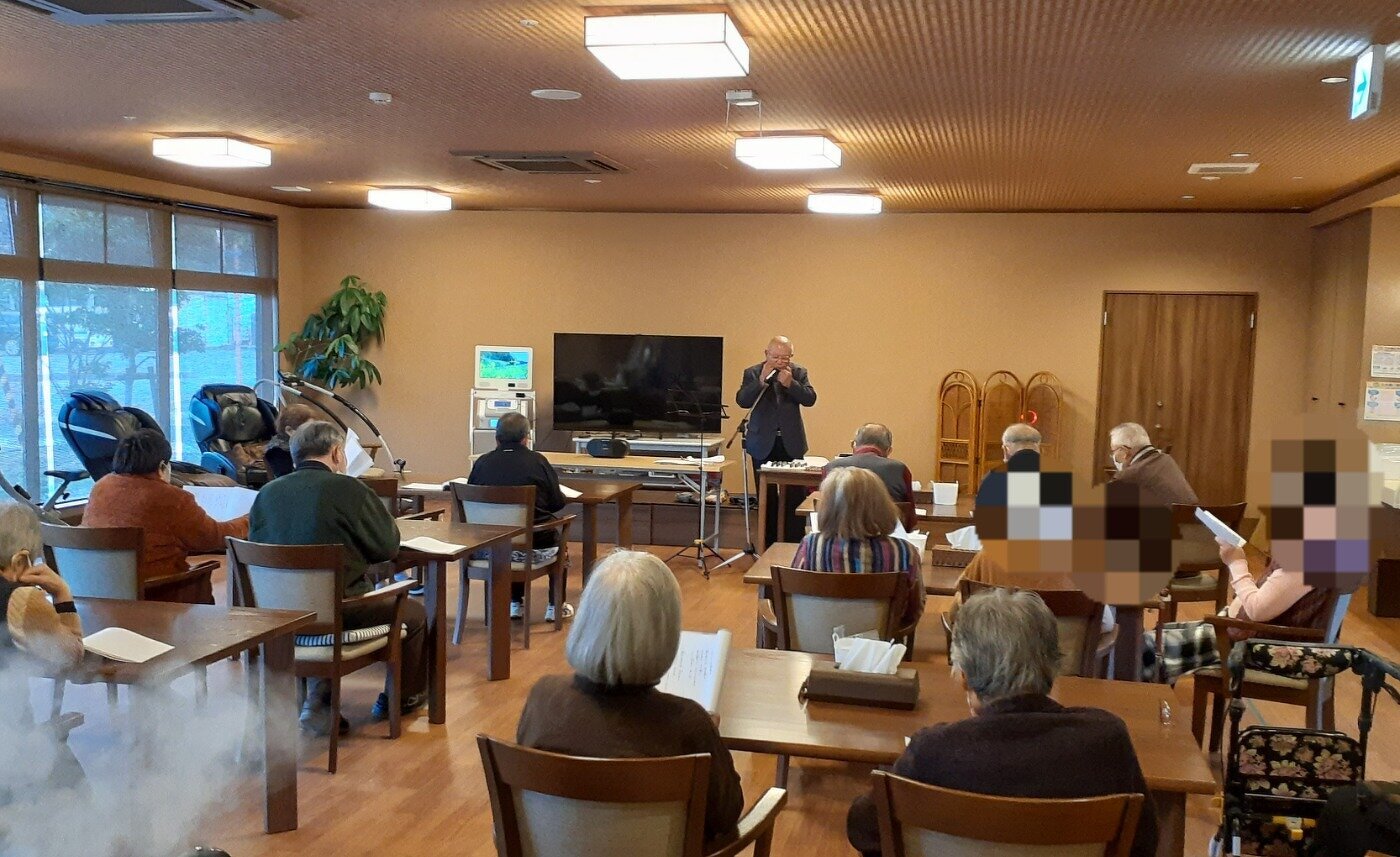 ご利用者様も馴染みのある曲に合わせ口ずさんだりリズムを取ったりと和やかな雰囲気に。