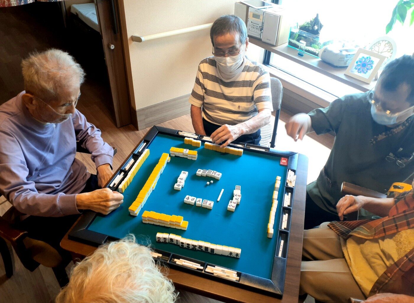 麻雀好きのご利用者様が集まって、月水は麻雀倶楽部が開催されます。