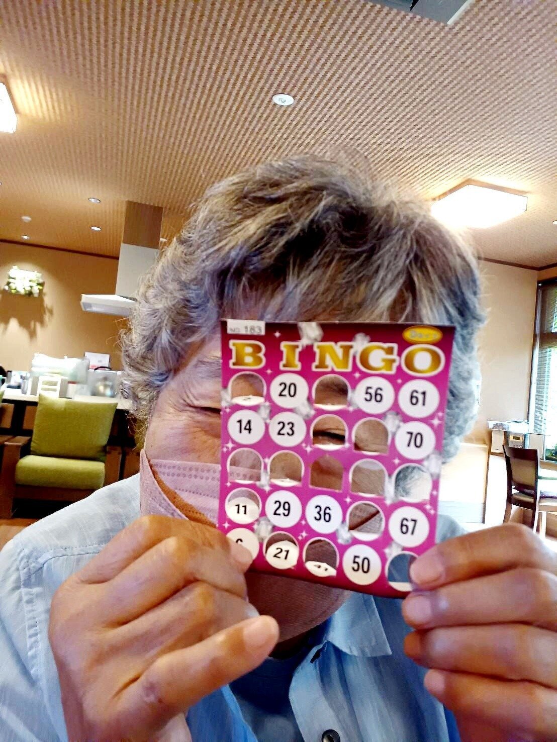 最後はビンゴ大会! 職員が叫ぶ数字に皆さま一喜一憂。「楽しかったぁ」といっぱい笑顔を見せてくださいました。
