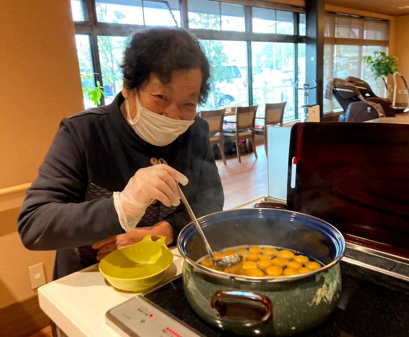 ご利用者様から庭の金柑の木に実がたくさんついたとデイサービスに持ってきてくださいました。オレンジ色で艶々の立派な大きい実がいっぱい!