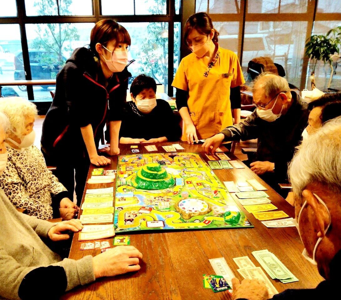 人生山あり谷ありを地で行くご利用者様と一緒にゲームは進行。みるみる真剣な表情になるご利用者様方々に私たちも引き込まれ
