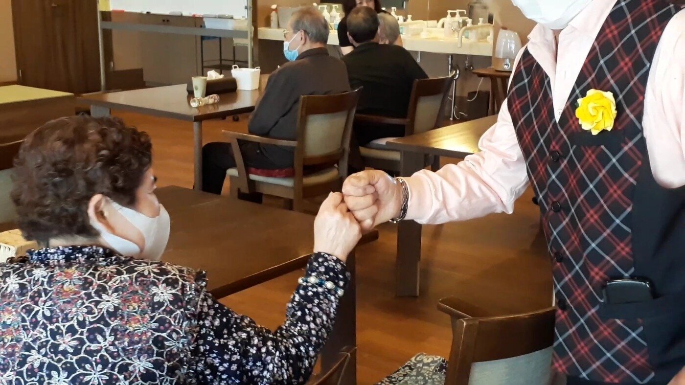 慰問で笑みの会さんが一年ぶりにいらっしゃいました。歌の数々と女性陣の煌びやかなお衣装に魅了されご利用者様もノリノリ。