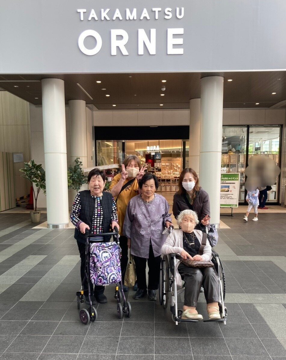 高松駅周辺を見に行きたいとみんなでサンポートにお出かけしました。がらりと様変わりした近代的な様子に皆さんびっくりされた表情。 久しぶりに来てよかった、ありがとうねと喜んで下さいました。