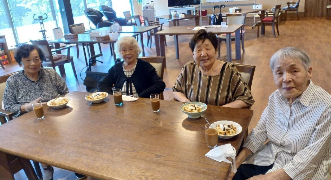 暑い日だったのでアイスクリームとバナナでおめかし。利用者様みんな「美味しい」とワッフルをぺろりと完食されていました。