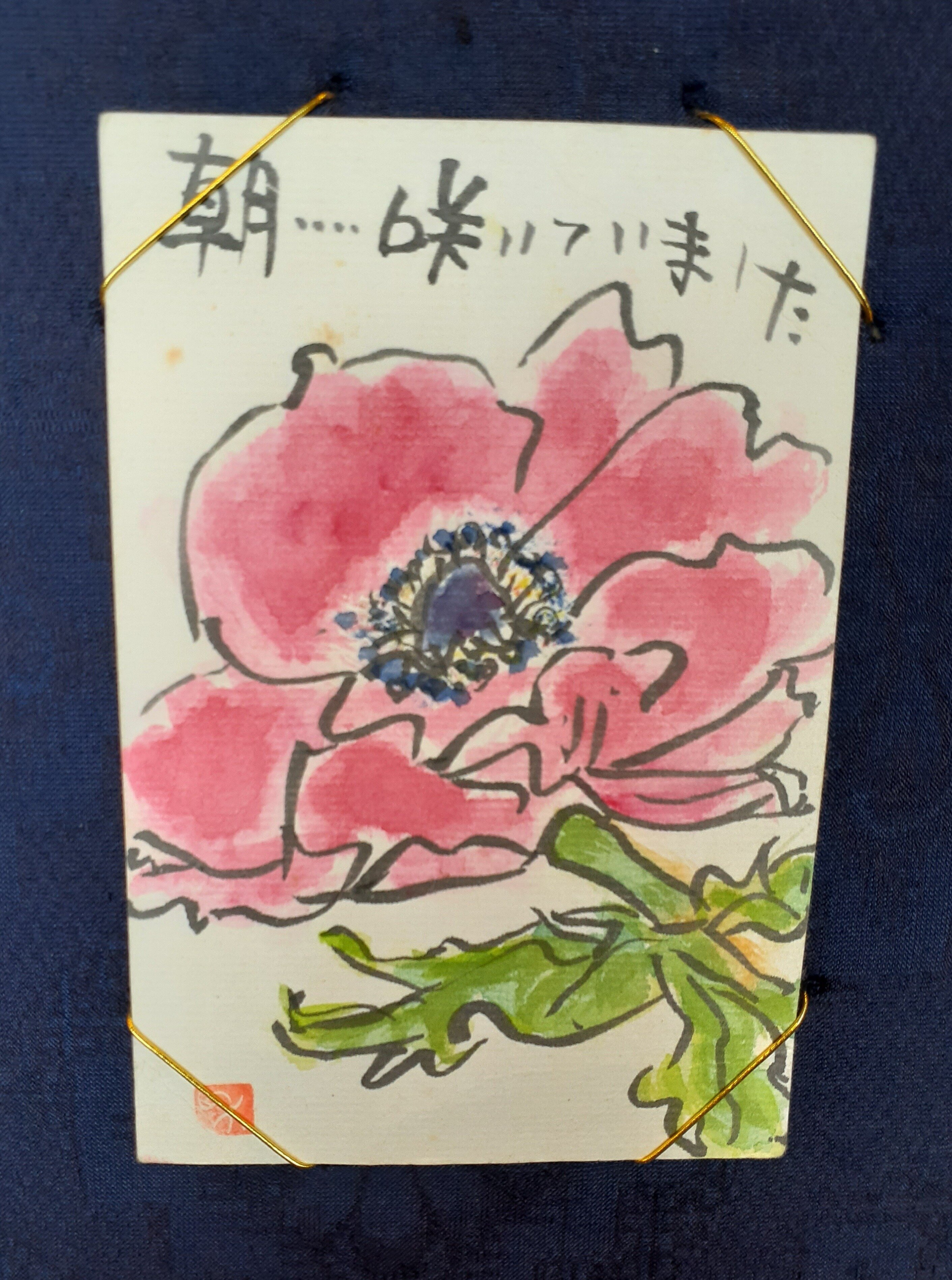 瀬戸雅館内では入居者さまの絵手紙作品を展示 味のある絵手紙に 皆様足を止めご覧いただいています。
