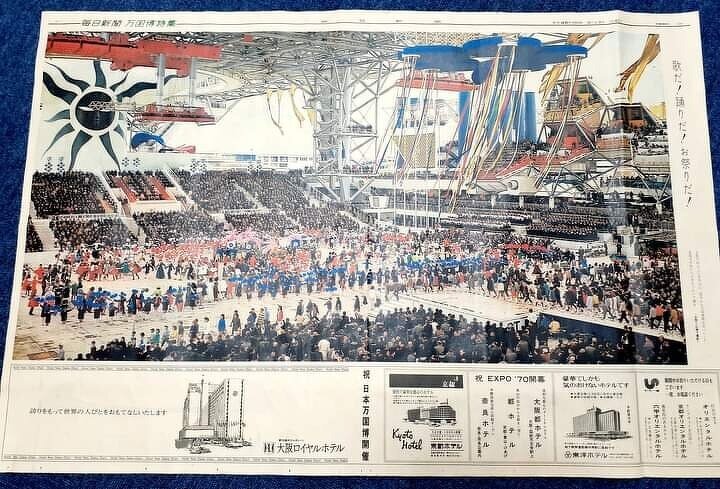 先日スタッフがお家の着物に挟んだ新聞がスゴい!と持ってきた昭和45年の大阪万博の記事の新聞。