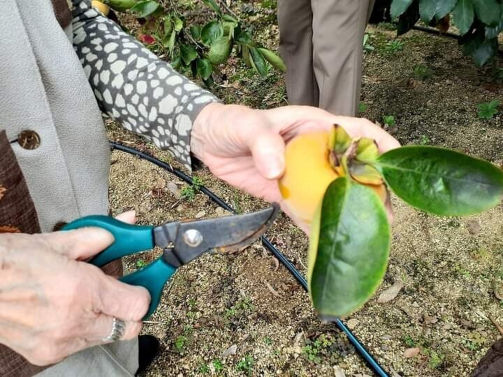 瀬戸雅には富有柿の木があります。また今年も実が鈴なりに実り皆でお話をしながら収穫。