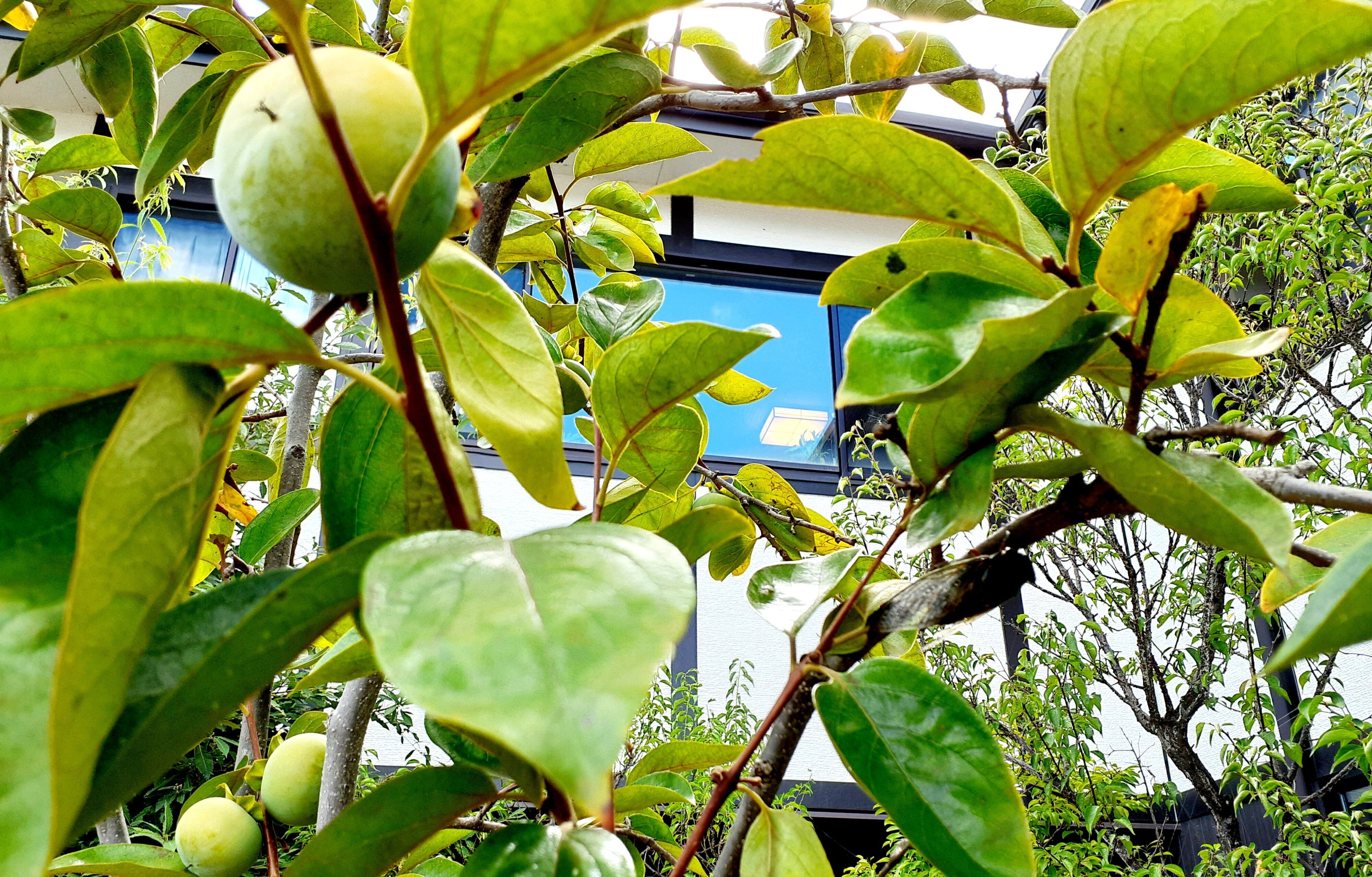 秋の訪れを知らせる柿の木に 今年も小さな実がたくさんついています。