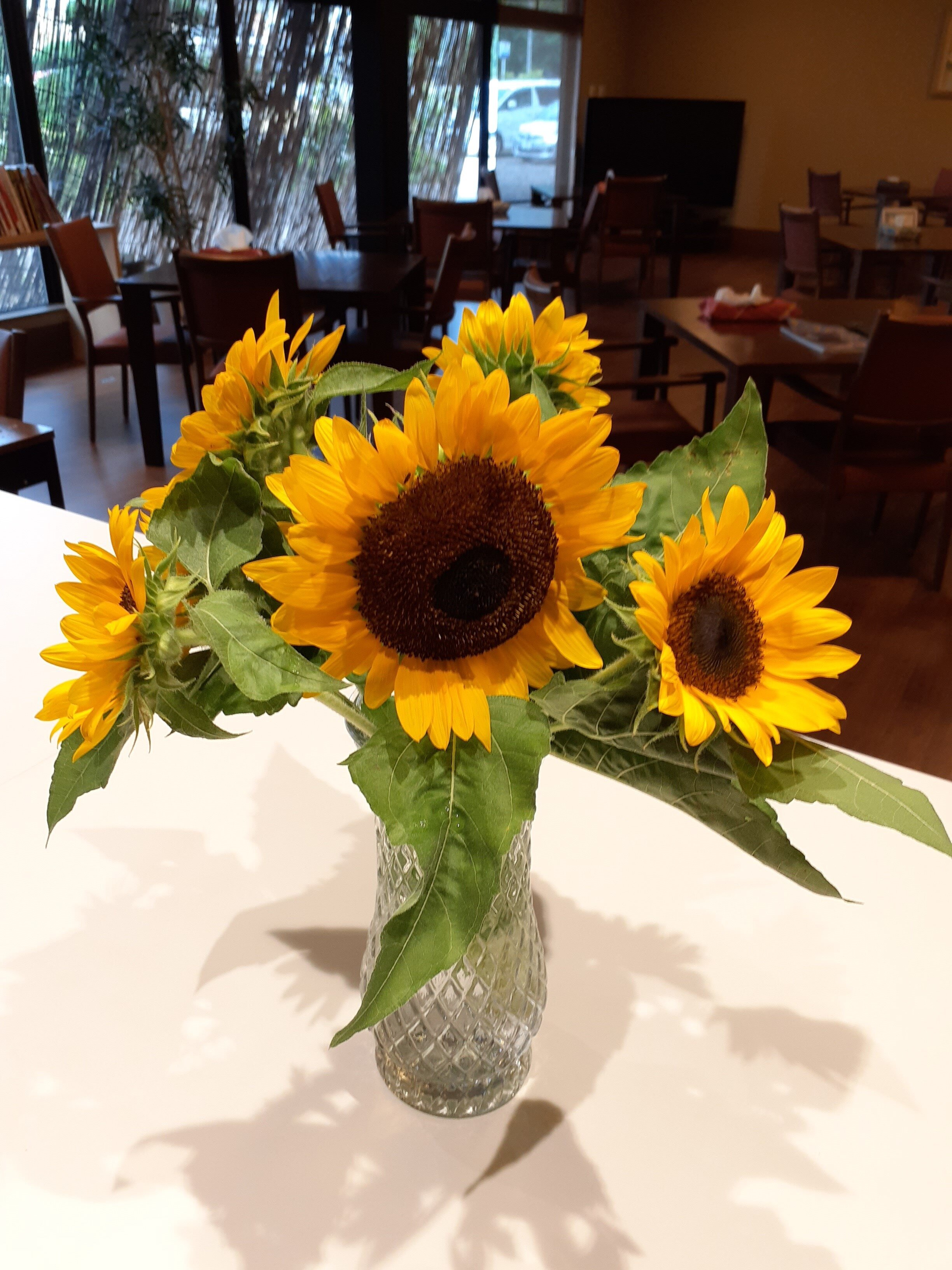 瀬戸雅のご近所の方が両手いっぱいにひまわりの花を抱えて来てくださいました。