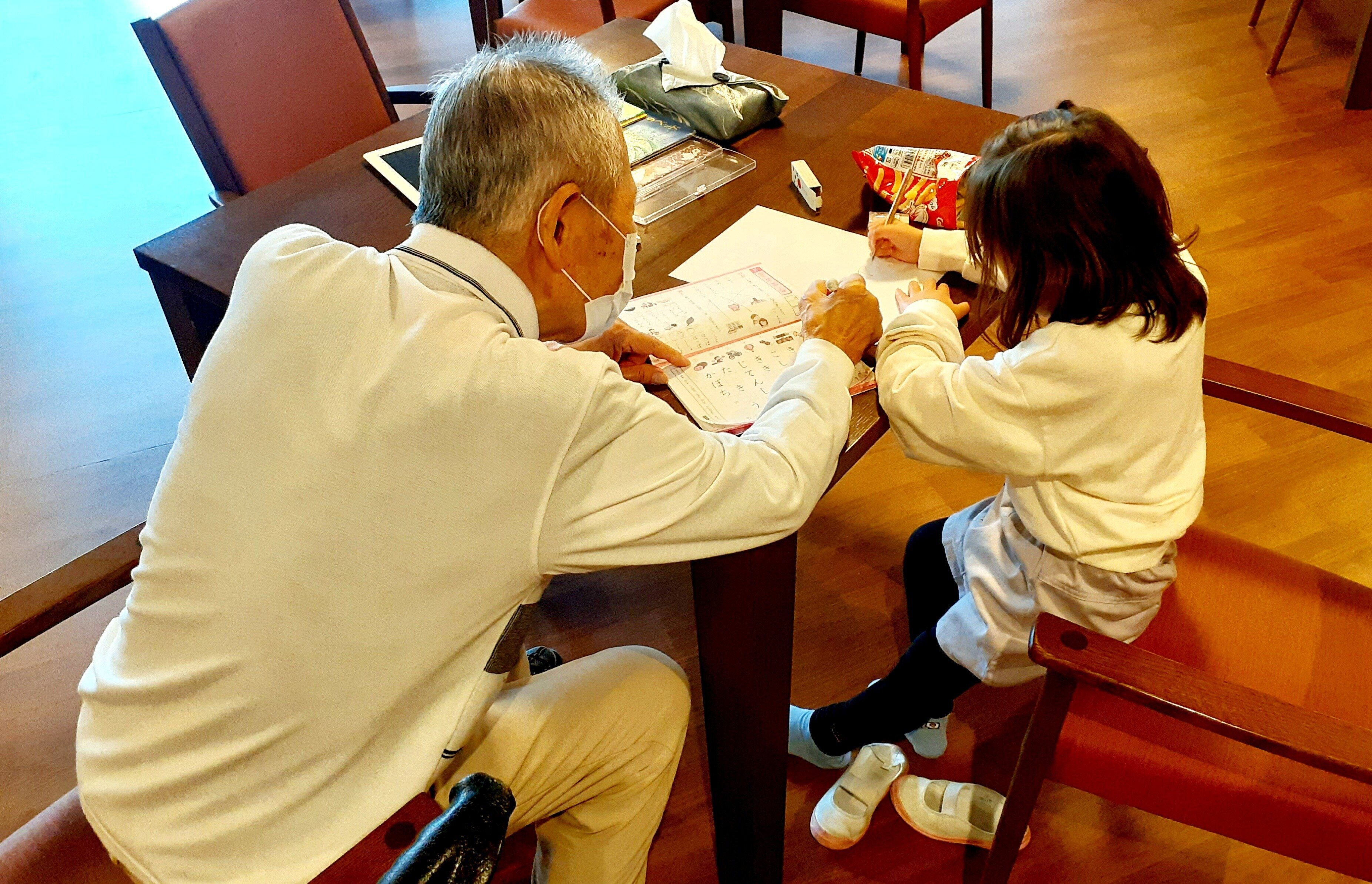 この春晴れて小学一年生になったと聞きにわか先生に大変身。ドリルを一緒にやってくださいます。