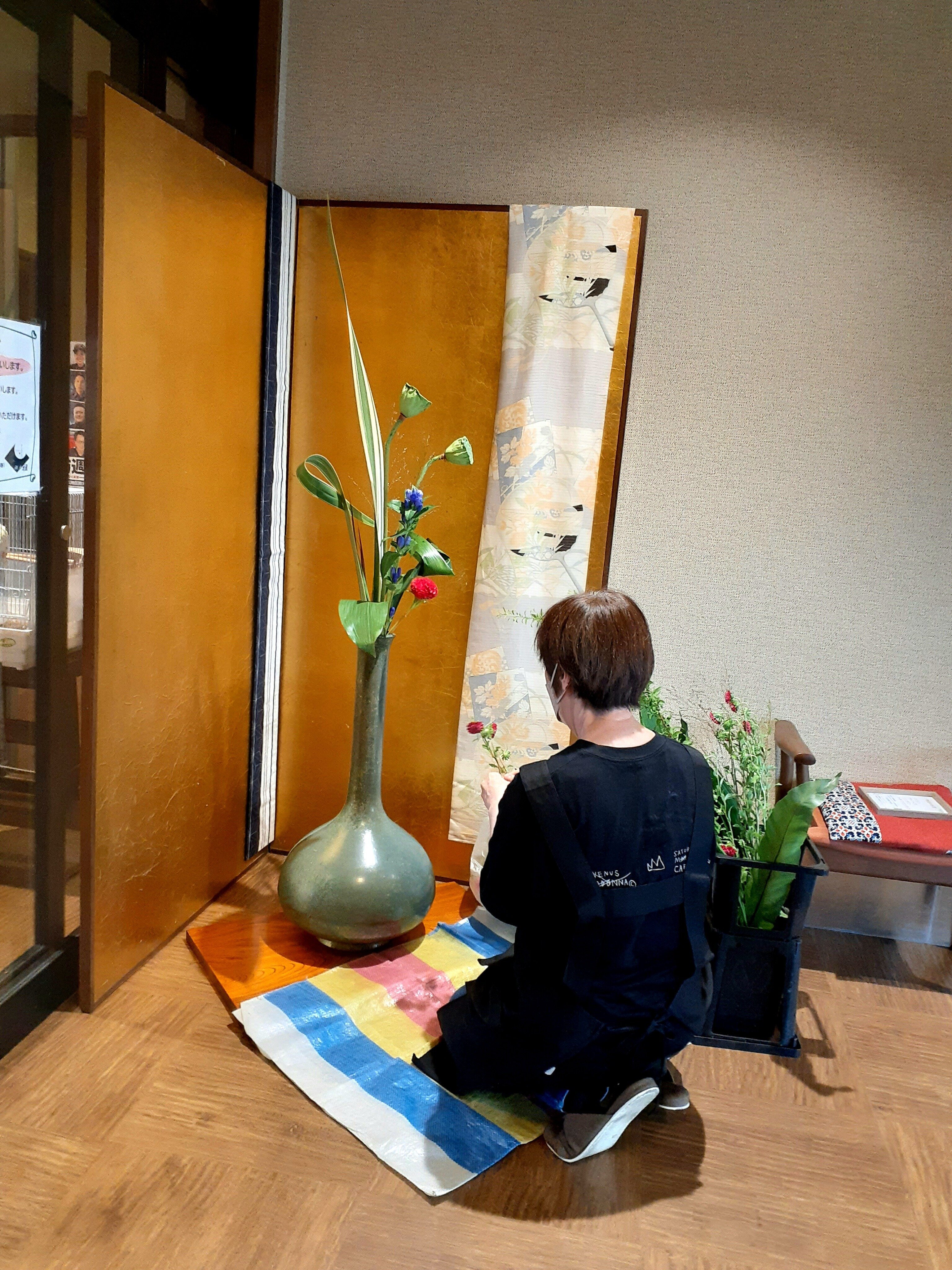 毎週玄関の迎え花を Atelier&草月流いけばなサロンの北村先生が自由でクールに花を『造形(いけ)て』下さっています。