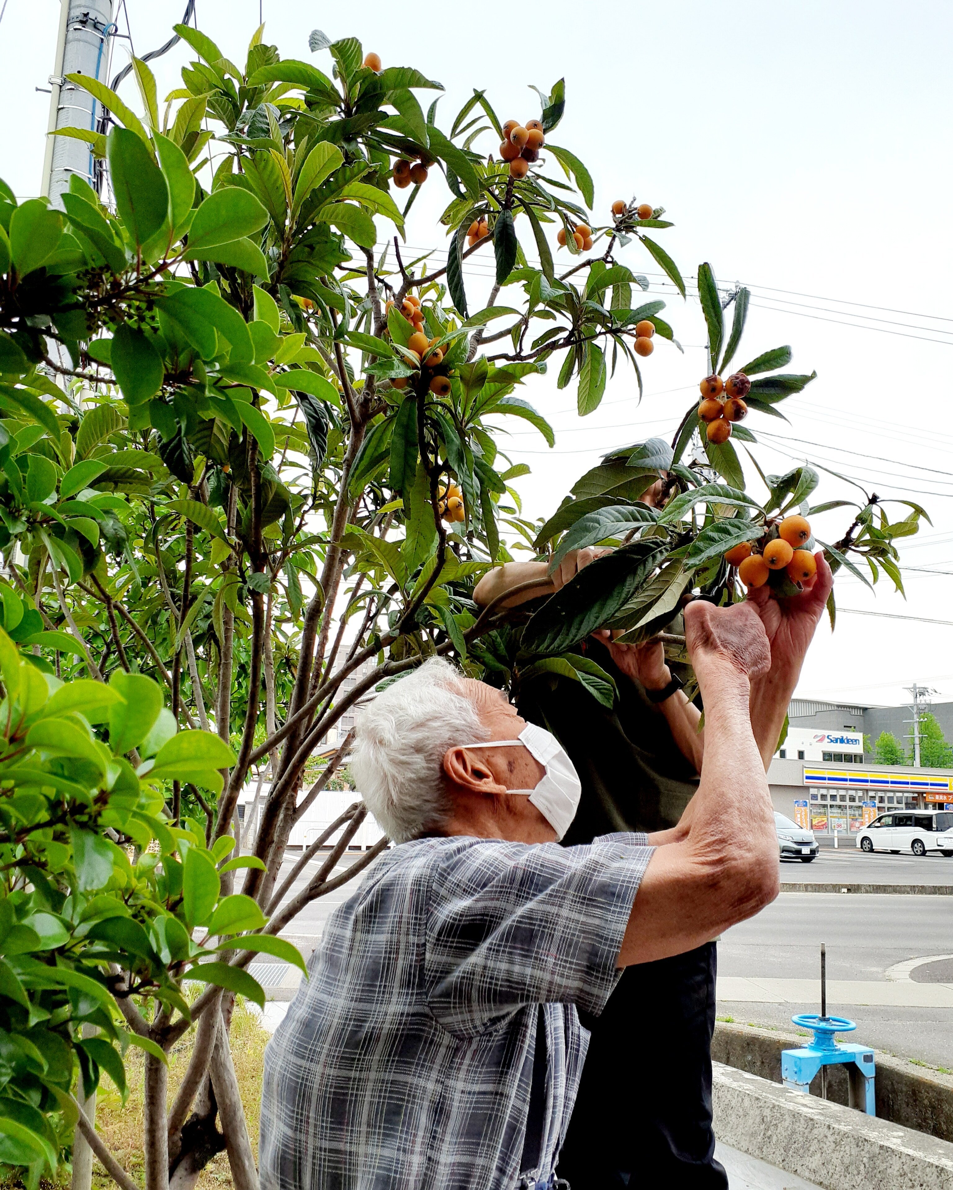 瀬戸雅の庭には果物の木がいくつかあります。柿にいちじく、橙等。 今は枇杷がたわわについており 入居者さまと一緒に収穫しました。