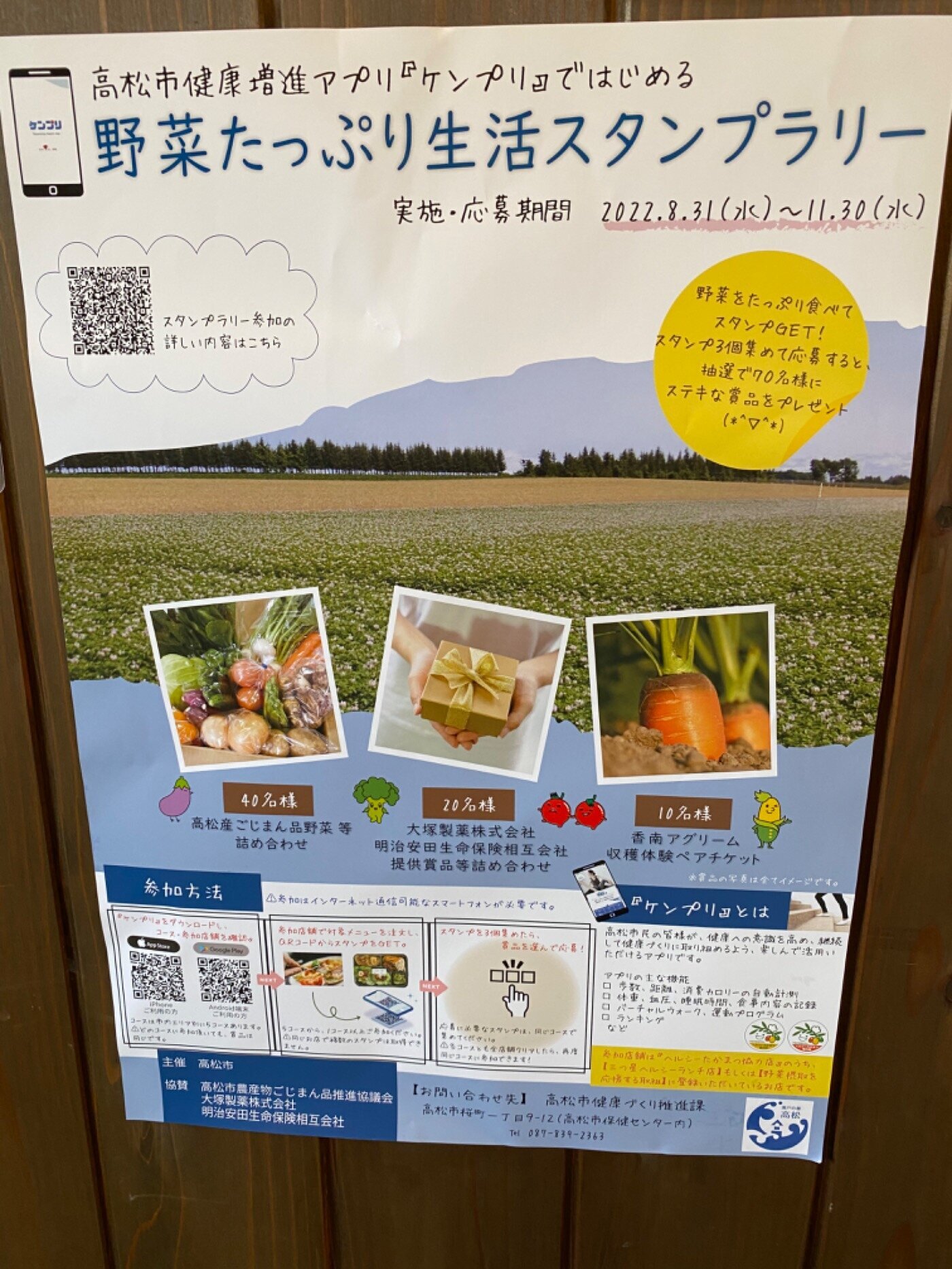 8月31日から11月30日の期間、高松市企画の野菜たっふりスタンプラリーが始まります。